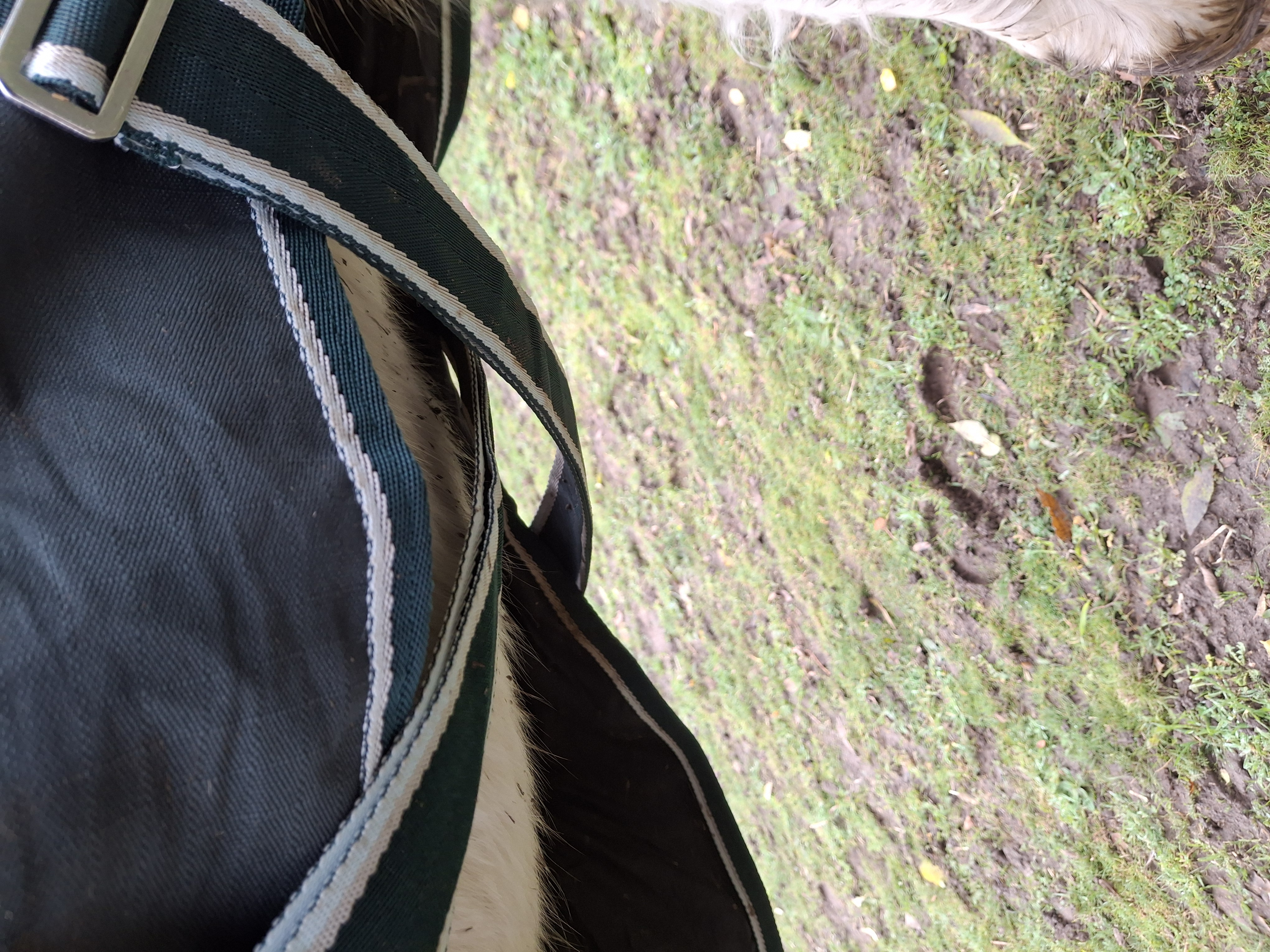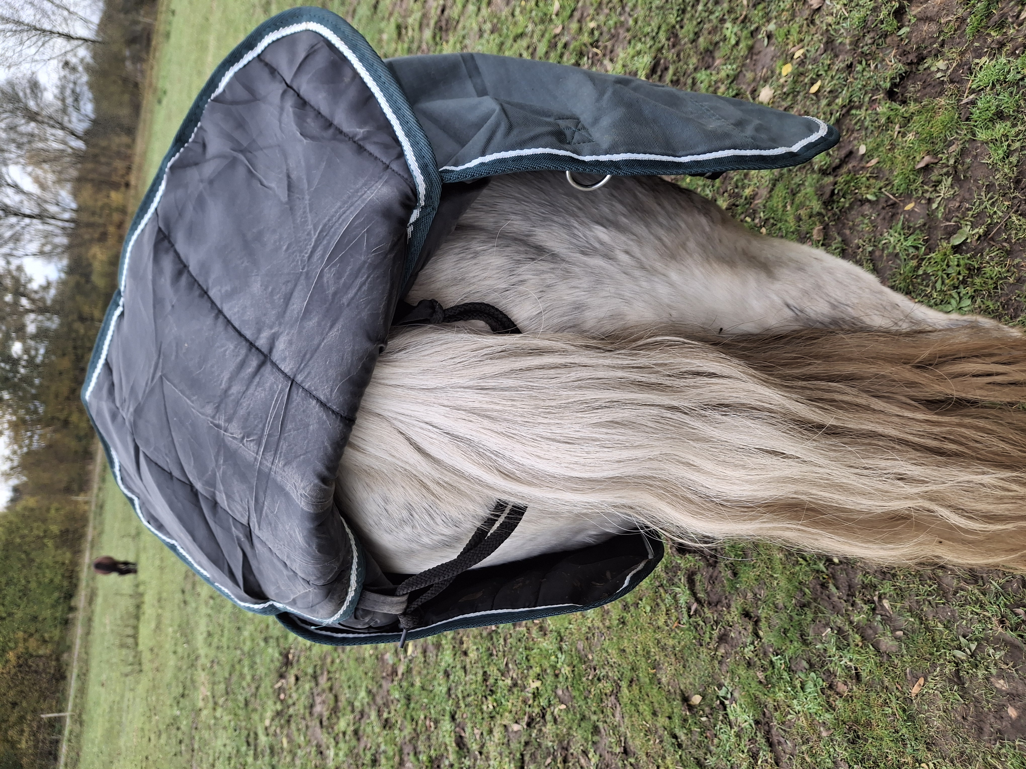 Husk at få halen ud over bagstroppen, så dækkenet ikke ryger op på ryggen fx. ved blæsevejr og rulning samt gjordene krydset under maven - se også youtube video nederst :-)